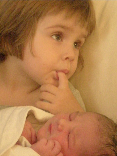 Here’s a photo of my two girls, Claude is 24 hours and this was the first meeting with her big Sister Pacifique